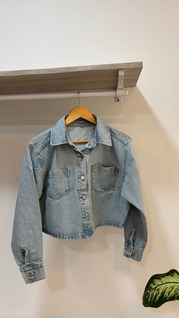 Campera corta de jean oversize, tipo chaqueta, corte ideal. Muy canchera !