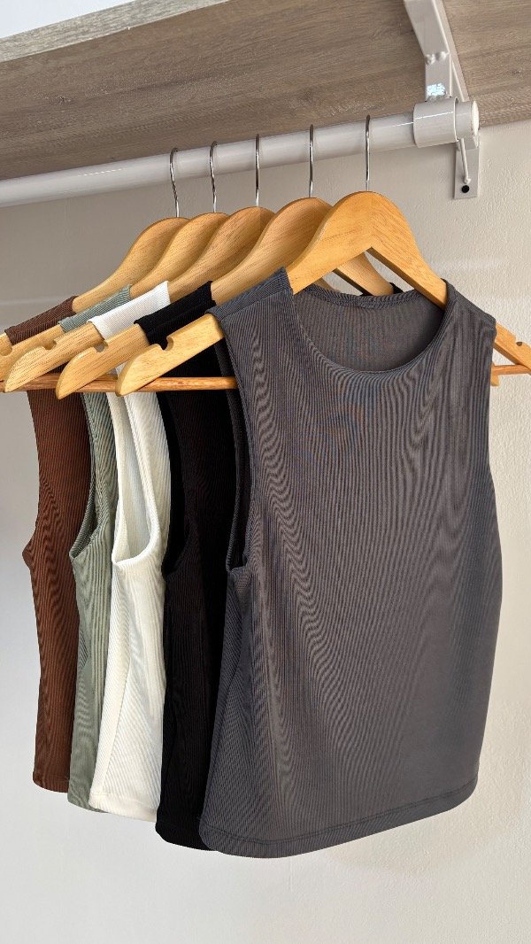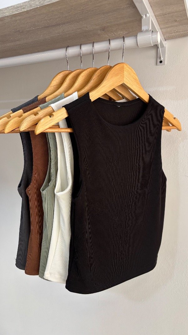 Descripción : musculosa cuello alto, doble tela en busto. Unico talle