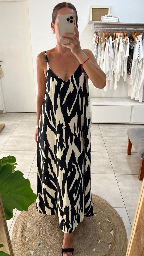 Descripción : Vestido amplio con spandex , escote en v. Unico talle